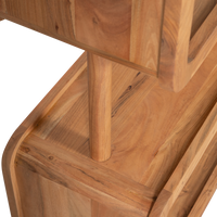 Atvira spintelė su organiška forma, pagaminta iš natūralios akacijos medienos. Puikiai tinka dekoracijų, knygų ar mėgstamų daiktų eksponavimui. Šiltas atspalvis ir natūralus medienos raštas sukuria jaukią atmosferą.