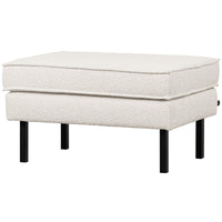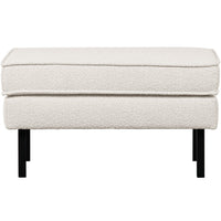 - Generous, comfortable footstool - Part of the well-known Rodeo series - Upholstered with a soft boucle (100% polyester) - H 45 cm x W 84 cm x D 54 cm The Rodeo series by Dutch interior label BePureHome is modern, sturdy and contemporary. The Rodeo's are spacious and offer a wonderfully firm seating comfort. The high leg frame makes the furniture look slender and airy. Rodeo is known for its timeless combination of colours and materials, inspired by the 50's and given a modern twist. Dare to go Rodeo! Material The Rodeo stool is made of a combination of solid wood, chipboard, polyurethane foam with a density of 25 kg/m3 and a zigzag spring. The seat contains a polyurethane foam with a density of 30 kg/m3 (HR3532). This Rodeo is upholstered in a soft boucle. The material of the Colmar boucle fabric responds to the latest trend: soft materials. The fabric is comfortable and has an elegant texture. Our Colmar boucle has a Martindale rating of 100,000, which means the fabric is suitable for intensive use. The dense weave ensures the strength of the fabric, which means that the boucle will not wear out or tear easily. Each colour also has a high colour fastness, but it is recommended to avoid direct sunlight to avoid colour shifts. Dimensions The Rodeo stool has a total height of 45 cm, width of 84 cm and depth of 54 cm. The metal legs are 20 cm high. The stool can carry up to 100 kg. Maintenance In the event of stains, dry immediately with a clean cloth or tissue. Do not rub! Most liquids can be removed with lukewarm water. Use a soft, circular movement from the outside to the inside. If the fabric can be removed from the furniture, washing at 30 degrees or dry cleaning is possible. We generally do not recommend impregnating our upholstered furniture. However, should you wish to do so, please test the impregnation agent on an invisible area of the fabric beforehand. Delivery The Rodeo stool is delivered in one package. The legs are easy to attach using the supplied assembly instructions. To protect hard floors, place felt gliders at the bottom of the legs.