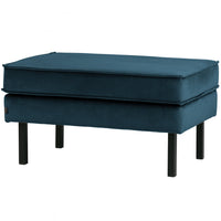 Not available for the UK. This article is not Fire Retardant. - Generous, comfortable stool - Part of the well-known Rodeo series - Covered in rich velvet (100% polyester) - H 45 cm x W 84 cm x D 54 cm The Rodeo series by Dutch interior label BePureHome is modern, sturdy and contemporary. The Rodeo's are spacious and offer a wonderfully firm seating comfort. The high leg frame makes the furniture look slender and airy. Rodeo is known for its timeless combination of colours and materials, inspired by the 50's and given a modern twist. Dare to go Rodeo! Material The Rodeo stool is made of a combination of solid wood, chipboard, polyurethane foam with a density of 25 kg/m3 and a zigzag spring. The seat contains a polyurethane foam with a density of 30 kg/m3 (HR3532). This Rodeo is upholstered in a rich velvet. Our Jarra velvet fabric has a luxurious look and feel. The fabric feels fine and has a beautiful light sheen. The Jarra velvet consists of 100% polyester and has a full and heavy quality. The material is therefore suitable for intensive use (Martindale 100,000). Besides the stylish design, the velvet fabric remains beautiful for a long time. Our Jarra fabric will not pill easily and is colourfast. The fabric is, to the surprise of many, a very easy fabric to maintain. Dimensions The Rodeo stool has a total height of 45 cm, width of 84 cm and depth of 54 cm. The metal legs are 20 cm high. The footstool can carry up to 100 kg. Maintenance Small stains can easily be removed by dabbing with an absorbent cloth. Larger stains can be easily removed with a mild detergent and a microfibre cloth. If necessary, use a hair dryer to dry the stain more quickly. Keep enough distance so that the fabric does not burn. Afterwards, the fabric can be brushed with a velvet brush. This brush is very good for weekly maintenance. Impregnation is not recommended. If impregnation is deemed necessary it is at your own risk. Delivery The Rodeo stool is delivered in one package. The legs are easy to attach using the supplied assembly instructions. To protect hard floors, place felt glides on the underside of the legs.