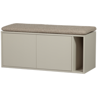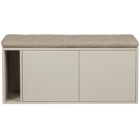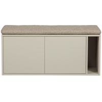 SETTLE DOWN – tai stilinga TV spintelė-suolas, pagaminta iš FSC sertifikuotos pušies, nudažyta matinės rūko spalvos laku. Baldas turi dureles ir atvirą skyrelį, kurį galima montuoti norimoje pusėje. Gale įrengta anga laidams, kad būtų tvarkingai paslėpti kabeliai. Komplekte yra 100% poliesterio boucle audinio sėdima pagalvėlė, todėl SETTLE DOWN puikiai tinka kaip suolas prie sienos. Puikiai dera su kitais šios serijos baldais, leidžiančiais susikurti asmeninę kompoziciją.