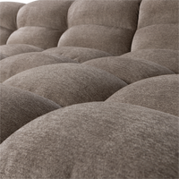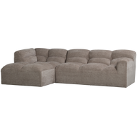 Didelis šezlongas su gražiomis užapvalintomis formomis. Gerai užpildytas, patogus dizainas. Apmuštas austu audiniu (100% poliesteris). Medžiaga: Mūsų minkštas Riona austas audinys (Martindale 50 000) tinka intensyviam naudojimui. Audinys išsiskiria šviesia spalvų kompozicija verpaluose. Matmenys: Aukštis: 80 cm. Plotis: 280 cm. Gylis: 165 cm. Sėdynės aukštis: 48 cm. Svoris: 90 kg. Keliamoji galia: 200 kg vienai sėdynei. Priežiūra: Dėmes nedelsiant nusausinkite švaria šluoste. Netrinkite! Daugumą skysčių galima pašalinti drungnu vandeniu.