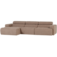 Šezlongo sofa NOVI, kairė pusė, buklė, pilkai rusva spalva