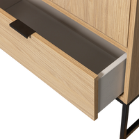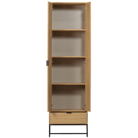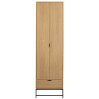 Aukšta spinta SILAS, ąžuolo dekoras – elegantiška siaura spinta su stalčiumi apačioje ir keliomis lentynomis. Puikiai dera moderniame interjere.
