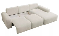 Sofa CARNOS kreminės spalvos – švelnaus tono ir išskirtinio komforto sofa, gali būti montuojama į abi puses. Audinys – šenilis Melody 14, kuris pasižymi aukštu atsparumu trinčiai ir maloniu paviršiumi.