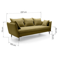 - Sėdimosios dalies gylis: 58 cm (su pagalvėmis) / 87 cm (be pagalvių)