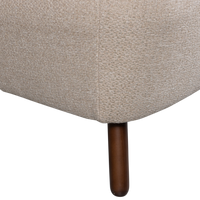 Kompaktiška sofa su žaismingu dizainu. Labai aukštas sėdėjimo komfortas. Originalios medinės kojelės. Medžiaga: Mūsų Goar austas audinys turi minkštą ir patogų pojūtį. Sudėtis: 70% perdirbtas poliesteris ir 30% poliesteris. Martindale: 70 000. Matmenys: Aukštis: 72 cm. Plotis: 134 cm. Gylis: 79 cm. Sėdynės aukštis: 46 cm. Svoris: nenurodytas. Keliamoji galia: 160 kg. Priežiūra: Dėmes nedelsiant nusausinti švaria šluoste ar servetėle. Galima skalbti 30 laipsnių temperatūroje, jei audinys nuimamas.