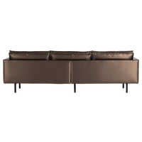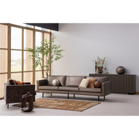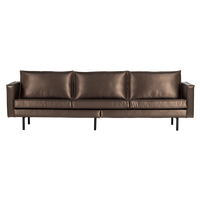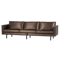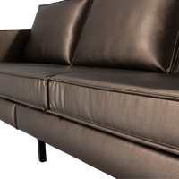 Moderni 3-vietė Rodeo sofa – tvirto rėmo, erdvi ir šiuolaikiško dizaino. Apmušta metallic vario rudos spalvos Aluma audiniu, kuris suteikia prabangos ir elegancijos. Konstrukcija derina kietą medieną, medžio drožlių plokštę, poliuretano putas ir zigzago spyruokles, užtikrinančias komfortą ir ilgaamžiškumą.