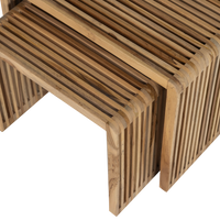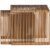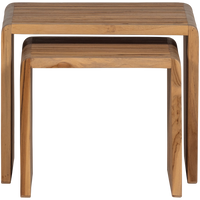 2 dalių organinių šoninių staliukų rinkinys. Pagamintas iš perdirbto tikmedžio medienos. Žaismingas ir erdvus dizainas. Jasmijn 2 dalių rinkinys yra universalus priedas jūsų interjerui. Žaismingas dizainas, derinamas su šilta perdirbto tikmedžio išvaizda, sukuria šiuolaikišką, tačiau natural stilių. Naudokite kaip stilingą komplektą arba atskirai kaip naktinius staliukus. Dėl kompaktiško dydžio juos lengva perkelti. Medžiaga: Tikmedis yra tropinė ir labai patvari mediena. Tikmedis pasižymi tamsiai ruda/raudona spalva ir tiesia gysla. Matmenys (didesnio staliuko): Aukštis: 41 cm. Plotis: 50 cm. Gylis: 45 cm. Rėmo storis: 3 cm. Matmenys (mažiausio staliuko): Aukštis: 36 cm. Plotis: 40 cm. Gylis: 40 cm. Rėmo storis: 3 cm. Priežiūra: Tikmedžio baldus valykite nuo dulkių švaria, sausa šluoste. Nevalykite per dideliu vandens kiekiu, nes tai gali šiurkštinti medienos pluoštus. Pristatymas: Rinkinys pristatomas vienoje pakuotėje.