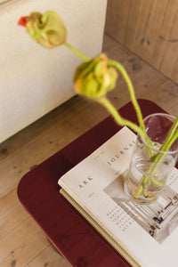 Šoninis staliukas GIRVEA kvadratinis – MDF konstrukcija, minimalistinis, blizgi apdaila ir unikalios formos kojos.