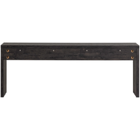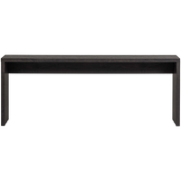 Modernus šoninis staliukas. Pagamintas iš MDF su tamsiai ruda apdaila. Papildomas patrauklumas: su aiškiai matomais medienos rievėmis. Maan šoninis staliukas sujungia stiprumą su paprastumu. Medžiaga: MDF plokščių medžiaga suformuojama iš suspaustų medienos pluoštų, surištų aukštu slėgiu naudojant dervą. Medžiaga visada yra iš anksto apdorota stipriu gruntu ir apdailinta spalva. Matmenys: Aukštis: 76 cm. Plotis: 200 cm. Gylis: 45 cm. Stalviršio storis: 4 cm. Svoris: 37 kg. Priežiūra: Plokštės medžiaga nesiardo ir nesikreipia. Tačiau pažeista medžiaga yra pažeidžiama drėgmei. Pristatymas: Prekė pristatoma vienoje pakuotėje, visiškai surinkta.