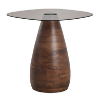 Šoninis staliukas MARDANE – kompaktiškas grūdinto stiklo viršus ir mango medienos bazė; idealus prie sofos ar lovos.