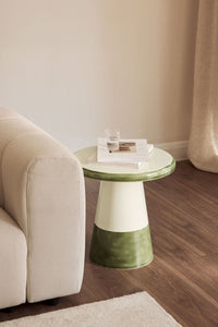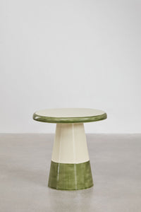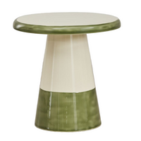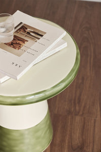 Šoninis staliukas MKUSINA iš geležies – blizgi emalė, kūginė bazė ir suapvalintas kraštas; patvari, lengvai prižiūrima detalė.