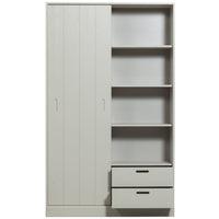 Didelė stumdomų durų spinta. Daug vietos saugojimui. Pagaminta iš FSC-sertifikuotos pušies medienos, apdailinta Dust spalva. Spinta turi 9 didelius skyrius ir 2 stalčius dešinėje pusėje. Stumdomos durys taupo vietą. Medžiaga: Pušies mediena šlifuota ir apdailinta Dust spalva. Matmenys: Aukštis: 200 cm. Plotis: 120 cm. Gylis: 42 cm. Svoris: 71 kg. Lentynos keliamoji galia: 10 kg. Priežiūra: Apdorota pušies mediena lengvai valoma šiek tiek drėgna šluoste. Svarbu: spintai aukštesnei nei 50 cm, pritvirtinti prie sienos, siekiant išvengti apvirtimo.