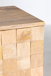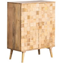 Kredensas JLEANDIA iš mango medienos – talpi spintelė su dekoratyvinėmis durimis. Puikiai tinka svetainės ar valgomojo interjerui.
