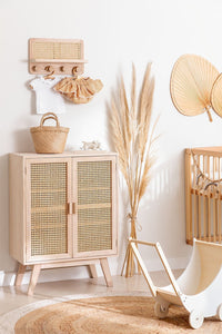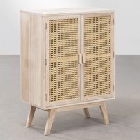 Kredensas RELDU DANDIA 2 durys – kompaktiškas, su rataniniais fasadais, tinka svetainei, valgomajam ar biurui.