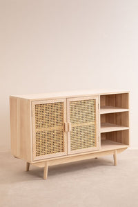 RELDU spintelė su 2 lentynomis – lengvas paulovnijos medis (Kiri) ir švarus siluetas suteikia papildomą vietą laikymui be vizualinio triukšmo.
