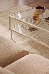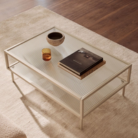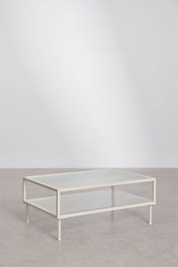 PVETURI – stačiakampis plieno ir grūdinto stiklo kavos staliukas su minimalistinėmis linijomis ir papildoma apatine stiklo lentele.