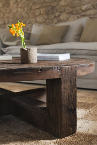 Apvalus staliukas JENDEA iš perdirbtos medienos – rustic stiliaus dizainas, sukuriantis natūralų jaukumą.