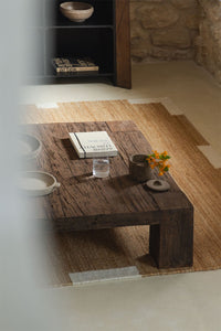 Kvadratinis staliukas JENDEA iš perdirbtos medienos – natūralus dizainas, kuriame dera ilgaamžiškumas ir tvarumas.