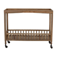 Konsolinis staliukas SALI – tai elegantiškas ir funkcionalus baldas, pagamintas iš tamsios mango medienos su natūraliai blizgančia apdaila. Staliukas pasižymi erdviu dizainu, todėl jį galima naudoti įvairiais būdais: virtuvėje kaip baro staliuką, prieškambaryje batams ar kepurėms laikyti, arba svetainėje su dekoratyviniais krepšiais. Praktiški ratukai suteikia staliukui mobilumo, o natūrali medienos tekstūra ir šilta spalva praturtina namų interjerą.