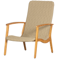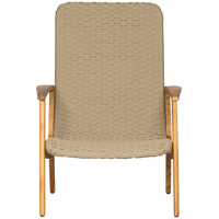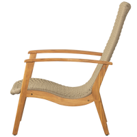 Fotelis STONY Garden su porankiais – solidus lauko fotelis iš tikmedžio ir pintos virvės sėdynės, skirtas komfortiškam poilsiui.