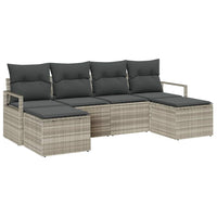 <strong></strong> 6 dalių sodo sofų komplektas su pagalvėlėmis, šviesiai pilkas poli ratanas.