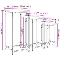Šie trys sustumiami šoniniai staliukai bus sumaniu sprendimu mažoms vietoms ar bet kokiai ribotos vietos erdvei. Pasižymintis pramoniniu dizainu, šis šoninių staliukų rinkinys suteiks jūsų svetainei, miegamajam ar biurui prašmatnumo.