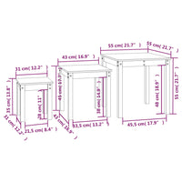 Didelio staliuko matmenys: 55 x 55 x 55 cm (ilgis x plotis x aukštis); Vidutinio staliuko matmenys: 43 x 43 x 45 cm (ilgis x plotis x aukštis); Mažo staliuko matmenys: 31 x 31 x 35 cm (ilgis x plotis x aukštis);