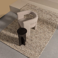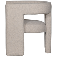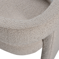 TIWA fotelis (smėlio) – modernus dizainas ir itin minkštas boucle audinys, suteikiantis jaukumo ir šilumos.