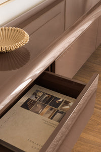 TV spintelė ADEMUA MDF blizgi – erdvus, modernus baldas televizoriui ir daiktų laikymui.