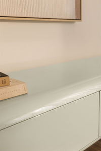 TV spintelė ADEMUA MDF lakas – minimalistinė ir patogi spintelė su blizgia apdaila.