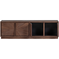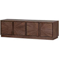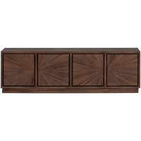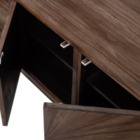 Prabangi ir moderni TV spintelė. Pagaminta iš perdirbtos tikmedžio medienos. Papildomas grožis: rafinuotos detalės ant durų. Medžiaga: Tikmedis yra tropinė kietmedžio rūšis ir labai patvari mediena. Tikmedis pasižymi tamsiai ruda/raudona spalva, o tai suteikia jai labai prabangų vaizdą. Matmenys: Aukštis: 45 cm. Plotis: 150 cm. Gylis: 44 cm. Durų storis: 2 cm. Durų plotis: 33 cm. Svoris: Nenurodytas. Priežiūra: Tikmedžio baldus valykite švaria, sausa šluoste. Nevalykite tikmedžio su pernelyg dideliu vandens kiekiu. Pristatymas: Sun TV spintelė pristatoma pakuotėje, reikalingas savitvirtinimas.