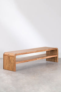 TV spintelė VLEAA 180×45 iš akacijos medienos – tvirtas, natūralaus stiliaus baldas su funkcionalia atvira lentyna įrenginiams ir gausia laikymo erdve. Modernus dizainas tampa svetainės akcentu ir kuria jaukią atmosferą.