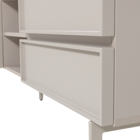 Galinga savo paprastumu. Pagaminta iš melamino/MDF derinio. Daug vietos daiktams laikyti. Tours spintelių serija siūlo daug vietos daiktams laikyti nesenstančio dizaino. Glotnios linijos ir aukštos kojos suteikia šiai baldų serijai prabangos. Aukštos kokybės apdaila užtikrina patogų naudojimą. Medžiaga: Melaminas yra popieriaus ir sintetinės dervos derinys, kuris, naudojant šilumą, padengiamas medžio drožlių plokšte ar kita lygia mediena. Melaminas gali suteikti matinį arba blizgantį paviršių ir yra itin tvirtas. Melamino gaminiai yra atsparūs įbrėžimams, nusidėvėjimui ir karščiui. Matmenys: Aukštis: 80 cm. Plotis: 120 cm. Gylis: 42 cm. Kojų aukštis: 15 cm. Svoris: 51 kg. Stalčiaus keliamoji galia: 15 kg vienam stalčiui. Viršaus keliamoji galia: 50 kg. Priežiūra: Melamino baldus labai lengva prižiūrėti. Valykite minkšta, drėgna šluoste ir neutraliu plovikliu. Saugus naudojimas: Spintoms, aukštesnėms nei 50 cm, rekomenduojame skirti papildomą dėmesį tvirtinimui prie sienos. Pristatymas: Baldas pristatomas vienoje pakuotėje su aiškiomis surinkimo instrukcijomis.