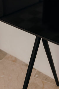 TV stovas GORKUSI – metalinė konstrukcija su kabelių valdymo sistema, minimalistinis ir tvirtas sprendimas.