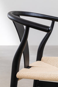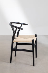Valgomojo kėdė EILISH, juodo uosio medžio – išraiškingo dizaino baldas su moderniu kontrastu. Tvirtas karkasas ir pintas sėdynės paviršius suteikia stilių ir komfortą viename.