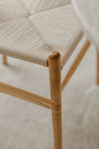 Valgomojo kėdė EILISH, natūralaus uosio medžio – minimalistinio dizaino baldas, sujungiantis natūralią tekstūrą ir lengvą formą. Pintas sėdimosios dalies paviršius suteikia jaukumo ir kontrastą su medžio konstrukcija. Ergonomiškas atlošas užtikrina komfortą.