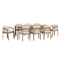 Paversk savo lauko erdvę tikru elegancijos ir komforto centru su valgomojo komplektu KAELA – ULENO. Rinkinį sudaro ilgas 220x100 cm stalas iš natūralios akacijos medienos bei 8 patogios kėdės su paminkštintomis pagalvėlėmis. Šis dizainas – tai balansas tarp modernaus minimalizmo ir natūralios estetikos. Stalas pasižymi tvirta konstrukcija, o kėdės – ergonomišku dizainu su porankiais, kad ilgos vakarienės po atviru dangumi būtų dar malonesnės.