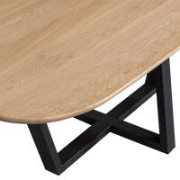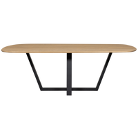 Organinės formos ąžuolinis stalas su modernia Drenthe koja. Stalo viršus apdorotas transparent lacquer. Drenthe koja pagaminta iš metalo su black powder coating apdaila. Medžiaga: Ąžuolas pasižymi aiškiai matomu raštu. Stalo viršus lengvai nušlifuotas. Matmenys: Aukštis: 74 cm. Plotis: 219 cm. Gylis: 99 cm. Svoris: 53 kg. Maksimali apkrova: 150 kg. Priežiūra: Apdorotas ąžuolas lengvai prižiūrimas. Valykite dulkes sausa šluoste. Drėgnas dėmes nedelsiant pašalinkite drėgna šluoste. Metalinės dalys valomos drėgna šluoste ir švelniu plovikliu.