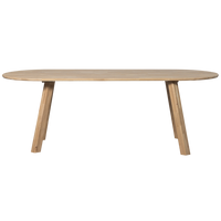 Ovalus ąžuolinis stalas su Haarlem keturkoju. Stalas apdorotas transparent lacquer, kuris pabrėžia natūralią medienos spalvą. Medžiaga: Stalas pagamintas iš klijuoto ąžuolo su piršto jungtimi, sukuriančia žaismingą motyvą. Ąžuolas pasižymi aiškiai matomu raštu. Stalo viršus lengvai nušlifuotas. Matmenys: Aukštis: 75 cm. Plotis: 219 cm. Gylis: 89 cm. Svoris: 38,8 kg. Maksimali apkrova: 50 kg kojai. Priežiūra: Apdorotas ąžuolas lengvai prižiūrimas. Reguliariai valykite dulkes sausa šluoste. Drėgnas dėmes nedelsiant pašalinkite drėgna šluoste ir neutraliu plovikliu.